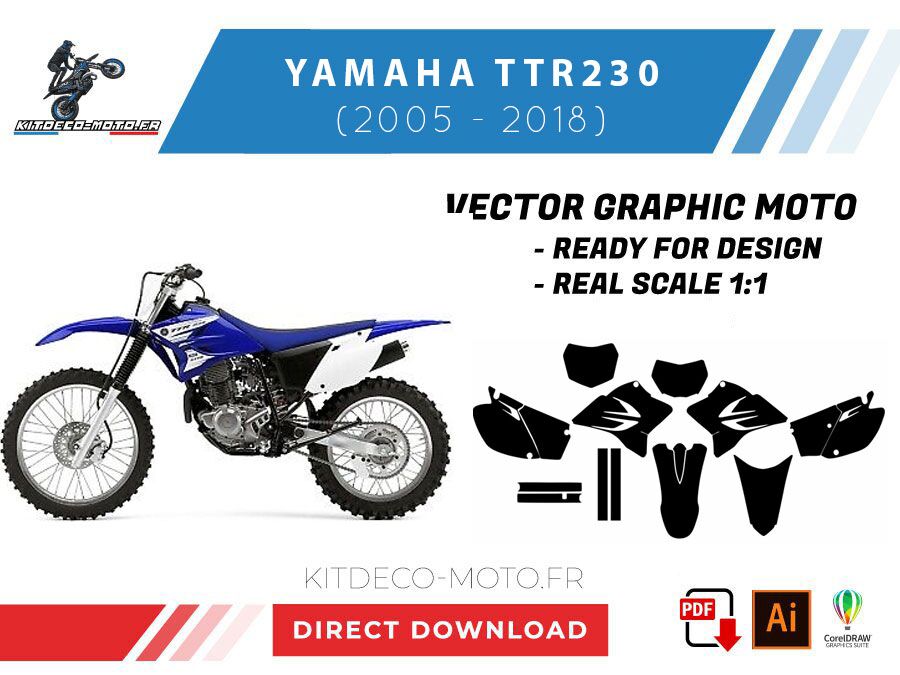 Kitdeco-moto propose le gabarit vectoriel de Yamaha TTR230 de 2005 à 2018. Le fichier est téléchargeable après votre achat directement sur votre compte. Le modèle est mis à l’échelle et il est prêt à être utilisé.