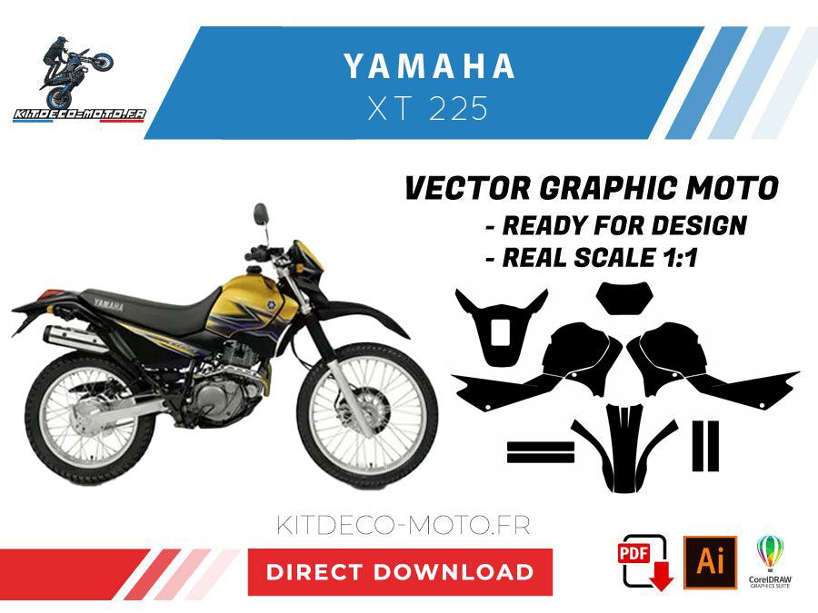 Kitdeco-moto propose le gabarit vectoriel de Yamaha XT 225. Le fichier est téléchargeable après votre achat directement sur votre compte. Le modèle est mis à l’échelle et il est prêt à être utilisé.