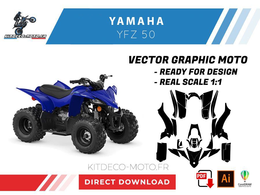 Kitdeco-moto propose le gabarit vectoriel de Yamaha YFZ 50. Le fichier est téléchargeable après votre achat directement sur votre compte. Le modèle est mis à l’échelle et il est prêt à être utilisé.
