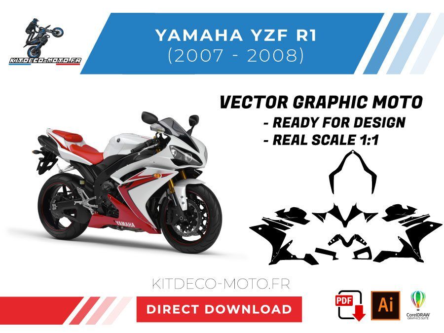 Kitdeco-moto propose le gabarit vectoriel de Yamaha YZF R1 de 2007 et 2008. Le fichier est téléchargeable après votre achat directement sur votre compte. Le modèle est mis à l’échelle et il est prêt à être utilisé.