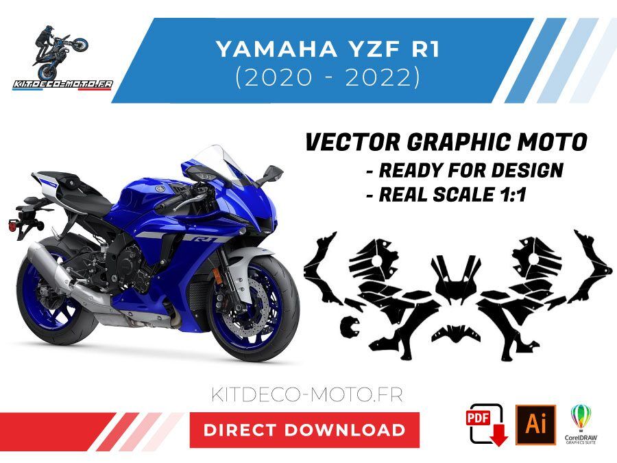 Kitdeco-moto propose le gabarit vectoriel de Yamaha YZF R1 de 2020, 2021 et 2022. Le fichier est téléchargeable après votre achat directement sur votre compte. Le modèle est mis à l’échelle et il est prêt à être utilisé.