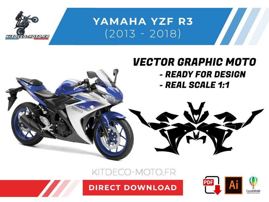 Kitdeco-moto propose le gabarit vectoriel de Yamaha YZF R3 de 2013 à 2018. Le fichier est téléchargeable après votre achat directement sur votre compte. Le modèle est mis à l’échelle et il est prêt à être utilisé.