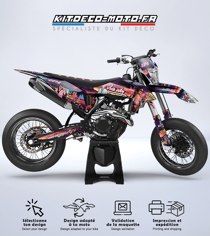 Le Vice City GTA – Kit déco Semi-Personnalisable est parfait pour avoir une moto unique et décorée. Le Vice City GTA – Kit déco Semi-Personnalisable est fabriqué avec des matériaux spécialement conçus pour les sports mécaniques. Il bénéficie d’une protection anti-UV qui lui assure une très grande longévité. Vous pourrez le choisir en différentes épaisseurs, allant de 200 microns à 550 microns.
